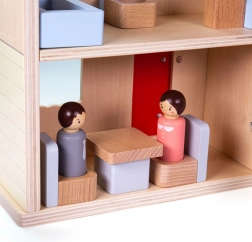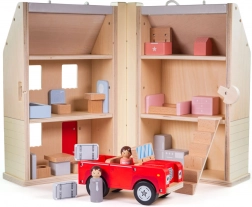 W zestawie znajduje się 13 elementów mebli, 2 drewniane figurki oraz czerwony samochodzik dla jeszcze większej liczby historii i interakcji.
