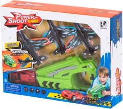 Wsuń auto do tylnego otworu pistoletu, naciągnij i wystrzel – idealne do szybkich wyścigów po podłodze.