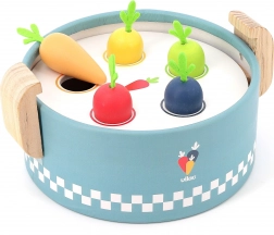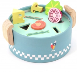 VILAC wkładany mini garnek to sprytna drewniana zabawka dla najmłodszych od 18 miesięcy. Pod pokrywką kryją się trzy wymienne płytki z różnymi kształtami, do których dzieci wkładają lub wrzucają kolorowe kawałki jedzenia. Powstaje w ten sposób „gotowanie” jak naprawdę, które rozwija wyobraźnię i umiejętności praktyczne.