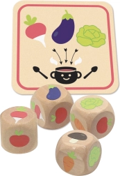 W tej urokliwej dziecięcej grze kościanej staracie się dzięki rzutom tworzyć kombinacje odpowiadające kartom przepisów. W każdej turze macie do trzech rzutów – po pierwszym możecie zachować wybrane kości i spróbować ulepszyć układ. Kto pierwszy zbierze 10 przepisów, wygrywa.