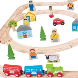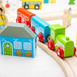 Zestaw wykonany jest z wytrzymałego drewna z elementami metalowymi i magnesami, co ułatwia łączenie wagoników. Elementy są kompatybilne z większością drewnianych kolejek na rynku, więc możesz dalej rozbudowywać swoją linię. Bezpieczna konstrukcja i intensywne kolory wspierają rozwój sensoryczny i małą motorykę.