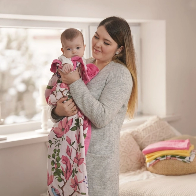 Jego unikalny design z motywem magnolii wniesie estetykę do każdego pokoju dziecięcego lub wózka. Produkcja z miłością podkreśla staranny dobór materiałów i ekskluzywność produktu.