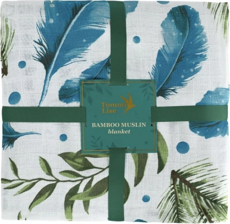 Tommy Lise bambusowy muślinowy kocyk z piórkami i liśćmi