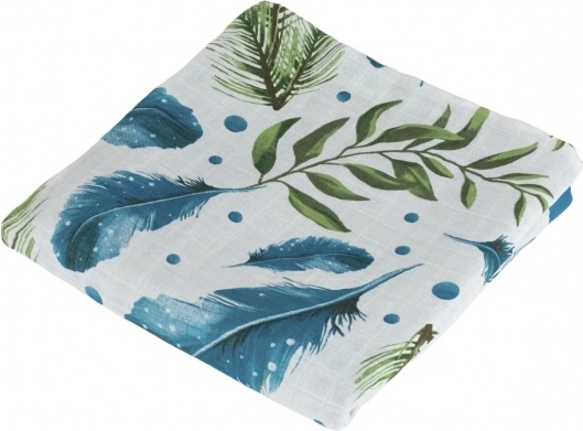 Ubierz swoje maleństwo w wygodę i delikatność. Ten bambusowy muślinowy kocyk został zaprojektowany dla maksymalnego komfortu z pięknym motywem piórek i liści. Wykonany w 70% z bambusa i 30% z bawełny, jest idealny na gorące dni dzięki swojej przewiewności i chłodnemu wrażeniu.