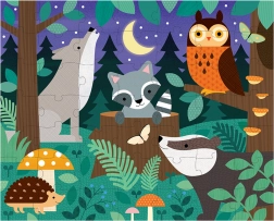 Odkrywaj magię nocnego lasu ze zwierzętami takimi jak szop pracz, sowa czy borsuk.