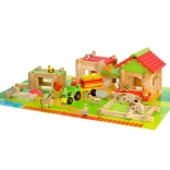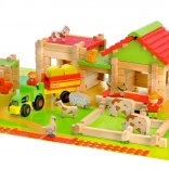Ta układanka wspiera dziecięcą kreatywność i pozwala stworzyć własną farmę z czerwonym dachem, zielonym traktorem i wieloma zwierzętami.