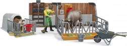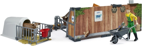 Pozwól dzieciom stać się małymi rolnikami z tym szczegółowym zestawem rolniczym. Zestaw zawiera dwa boksy: jeden dla cielęcia i większy dla krowy, oba wyposażone w poidła i karmniki. Dzieci będą mogły bawić się z ruchomą figurką rolnika i realistycznymi narzędziami, co przybliży im codzienne życie na farmie.