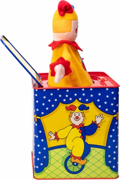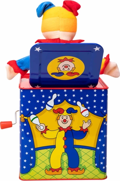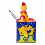 Obróć korbkę i zobacz, jak klaun wyskakuje. Ta zabawka jest idealna do rozwijania drobnych umiejętności motorycznych.