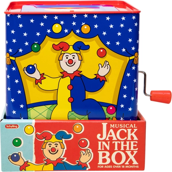 Pudełko muzyczne klaun to ponadczasowa zabawka wykonana z cyny z pięknym wzorem, która zapewnia godziny zabawy. Wystarczy obrócić korbkę i słuchać melodii znanej piosenki „Pop Goes The Weasel”, aż pojawi się kolorowy klaun.