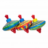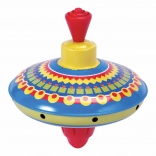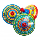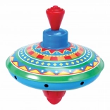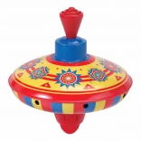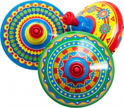 Każdy bączek wyróżnia się kolorowymi, geometrycznymi wzorami, które przyciągają wzrok i bawią dzieci.