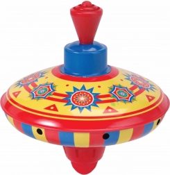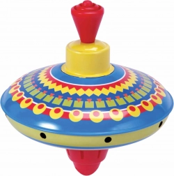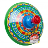 Odkryj urok tradycyjnej zabawki – metalowego bączka od marki Schylling. Ta zabawka jest wyposażona w wyraziste kolory i retro wzory, które przyciągną każde dziecko. Bączek uruchamia się prostym naciśnięciem przycisku, czemu towarzyszy charakterystyczny dźwięk, który dzieci uwielbiają.