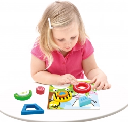Odpowiednia do domu i przedszkola – prosty sposób układania zachęca dzieci do samodzielności i naturalnie rozwija cierpliwość oraz koncentrację. Bezpieczne, gładkie krawędzie i nasycone kolory ułatwiają lepszą orientację w kształtach i barwach.