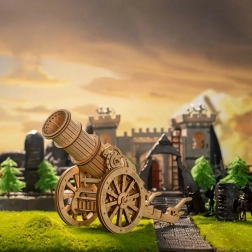 Zbuduj stylową średniowieczną armatę z naturalnego drewna i ciesz się sprytną rozrywką oraz dekoracją w jednym. Zestaw oferuje 158 precyzyjnie wyciętych elementów, średni poziom trudności montażu oraz w pełni funkcjonalny mechanizm strzelania piłeczkami pingpongowymi. Ręczne napinanie, regulowany kąt wystrzału i duże koła ułatwiające przemieszczanie czynią z niego świetny prezent dla miłośników historii, modeli i logicznych wyzwań.