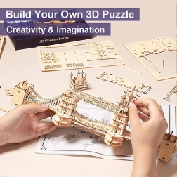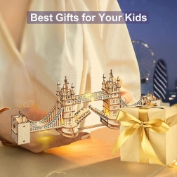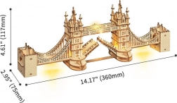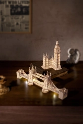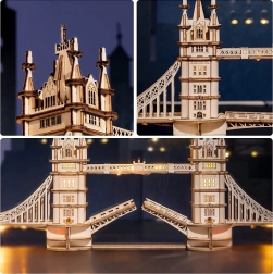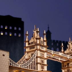 Poczuj atmosferę Londynu dzięki realistycznemu modelowi Tower Bridge z wysokiej jakości sklejki. Elementy precyzyjnie do siebie pasują, dzięki czemu budowa jest płynna i przyjemna. Zintegrowane podświetlenie LED nadaje gotowej konstrukcji przytulny wieczorny klimat i podkreśla dopracowane detale architektoniczne.