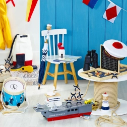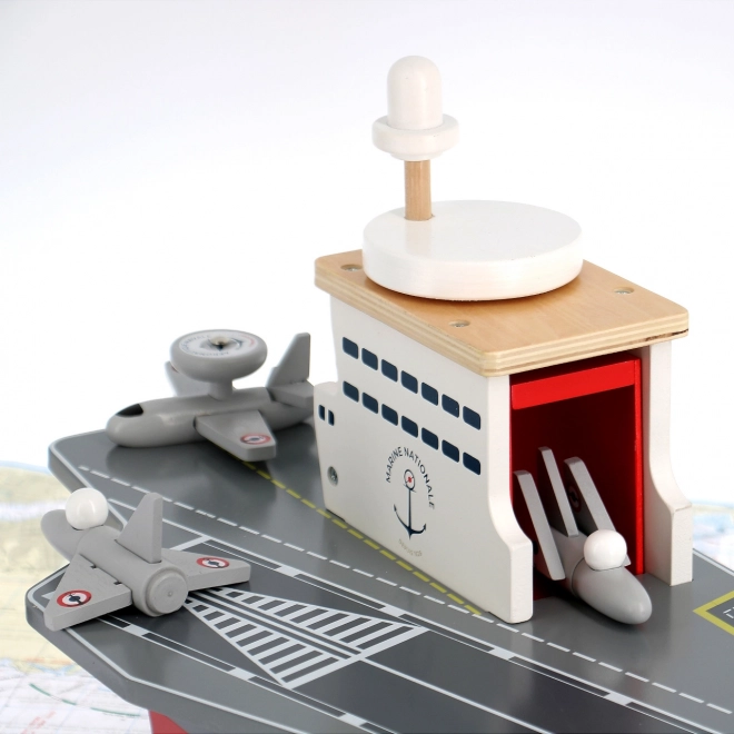 Ten precyzyjnie wykonany drewniany lotniskowiec wiernie odwzorowuje prawdziwe okręty lotnicze, włącznie z oznaczeniami Marine Nationale. Został wykonany z wytrzymałej, a jednocześnie lekkiej sklejki, dzięki czemu jest stabilny i wygodny w obsłudze nawet dla młodszych dzieci. Realistyczne, malowane detale i przemyślane funkcje pobudzają wyobraźnię i zapewniają autentyczne morskie doświadczenia.
