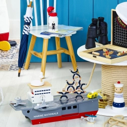 Mocna, a zarazem lekka sklejka, stabilna konstrukcja oraz malowane detale w barwach Marine Nationale gwarantują długotrwałą zabawę i atrakcyjny wygląd.