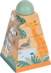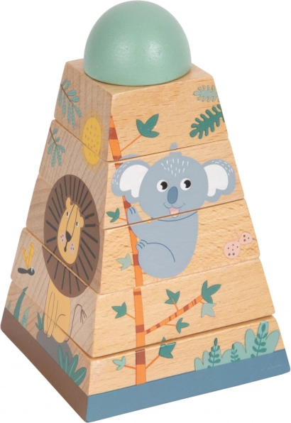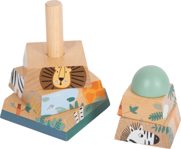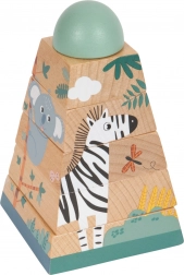 Ta zabawka z wytrzymałego drewna daje dzieciom możliwość doskonalenia umiejętności motorycznych i koordynacji ręka-oko. Składa się z sześciu elementów, które przy prawidłowym ułożeniu odsłaniają wesołe zwierzęta zamieszkujące safari. Wieża świetnie sprawdzi się nie tylko jako narzędzie edukacyjne, ale też estetycznie dopełni każdy dziecięcy pokój swoimi żywymi kolorami.