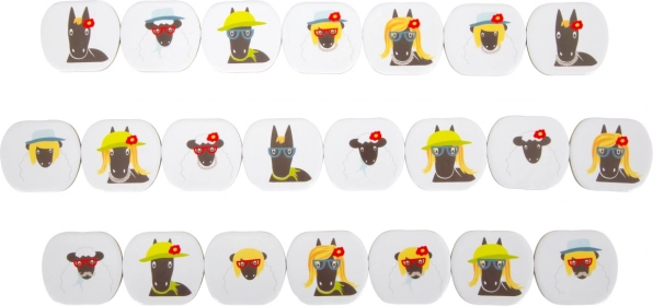 Zestaw 22 kartoników z postaciami pozwala grać w klasyczne „zgadnij, kim jestem”, a jednocześnie służy do treningu pamięci w trybie memory – podwójna porcja zabawy w jednym opakowaniu.