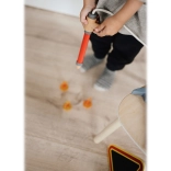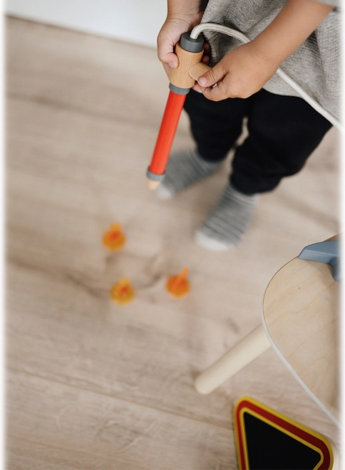 W zestawie znajduje się drewniany „wąż” oraz sikawka, dzięki którym dzieci z łatwością „ugaszą” każdy płomyk. Wspiera wyobraźnię i rozwój motoryki małej.