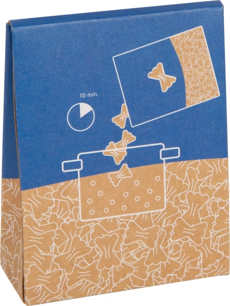 Kartonowe pudełko łatwo się otwiera i zamyka, a na tylnej stronie oferuje zrozumiały obrazkowy przebieg „gotowania”.