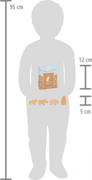 Ta kolekcja ośmiu solidnych drewnianych ciasteczek doskonale odwzorowuje kształty i detale zwierząt z sawanny. W każdym opakowaniu znajdziesz 2 lwy, 2 małpy, 2 nosorożce i 2 słonie, których naturalistyczny wygląd z pewnością zachwyci małych odkrywców. Ciasteczka są pakowane w wytrzymałe kartonowe pudełko, które łatwo otworzyć i zamknąć, i wzbogacą każdy dziecięcy sklepik lub kuchnię.