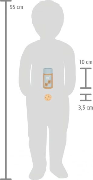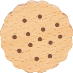 Te pięć solidnych drewnianych ciasteczek to idealne uzupełnienie dziecięcej zabawy. Nie tylko wspierają kreatywność i wyobraźniową zabawę, ale także pomagają rozwijać umiejętności motoryczne dzięki swojej naturalnej i realistycznej strukturze. Każde ciasteczko ma czekoladowe nadzienie i potrafi przyciągnąć uwagę dzieci dzięki swoim detalom.