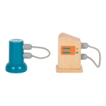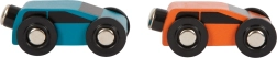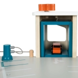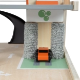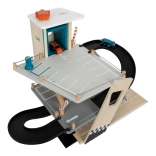 W zestawie znajdują się dwa samochodziki oraz dopracowane akcesoria: stacja paliw i ładowania, podnośnik oraz myjnia z tekstylnymi szczotkami. Solidne wykonanie z grubej drewnianej sklejki z elementami z litego drewna i bezpiecznego tworzywa gwarantuje stabilność i trwałość. Produkt wymaga montażu; w opakowaniu znajduje się ilustrowana instrukcja.