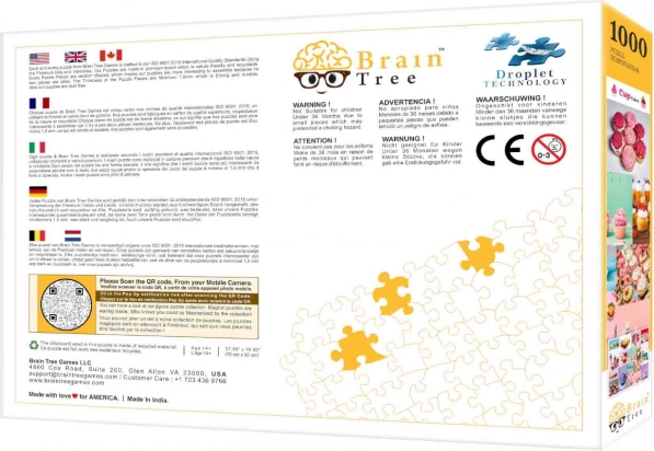 Zanurz się w świecie słodkich przysmaków z puzzlami Brain Tree Babeczki, które oferują 1000 losowo wycinanych elementów. Dzięki matowemu wykończeniu każdy kolorystyczny detal obrazu świetnie wygląda w każdych warunkach oświetleniowych. Każde opakowanie zawiera również plakat z odpowiadającym obrazem oraz praktyczne kartonowe przegródki do sortowania elementów.