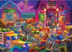 Puzzle Brain Tree zmierzch na podwórku przeniosą Cię na malowniczą farmę pełną życia i kolorów. Bogata scena ze stodołą, zwierzętami, starym ciężarówką i sezonowymi plonami zachwyci wszystkich miłośników szczegółowych ilustracji. Dzięki najwyższej jakości nadrukowi i matowej powierzchni każdy motyw świetnie wygląda nawet przy zmiennym oświetleniu.