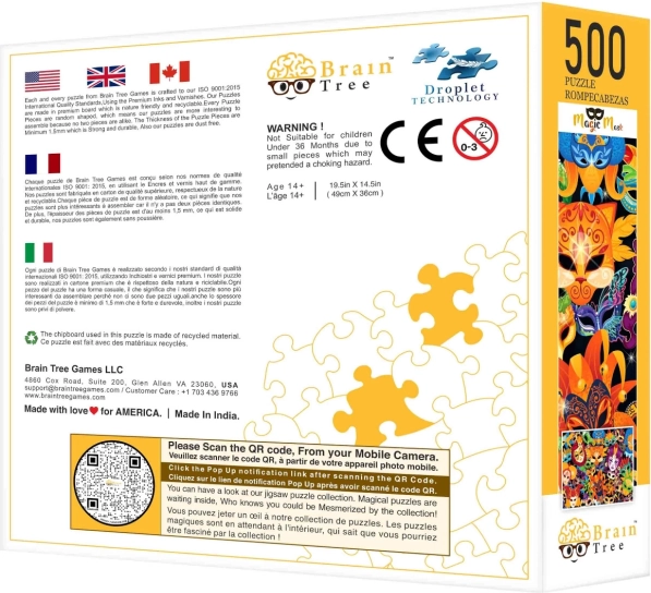 Ciesz się kreatywnym układaniem puzzli Magiczne Maski, które łączą artystyczny design z najwyższą jakością. Każdy element został zaprojektowany dla maksymalnej frajdy i precyzyjnego dopasowania, a matowe wykończenie zapewnia, że każdy detal obrazu jest zawsze doskonale widoczny.