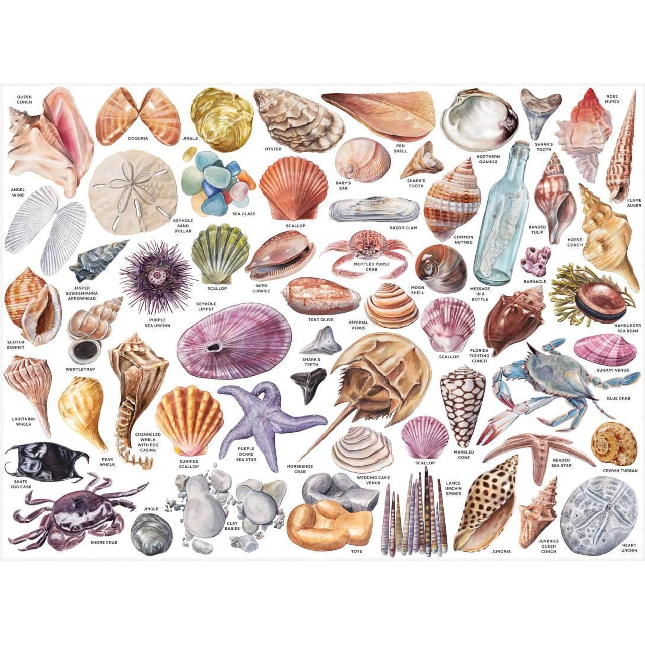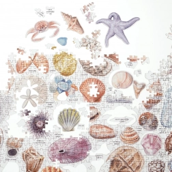 Puzzle na licencji dzieła The Beachcomber’s Companion [Podręcznik plażowicza] Anny Marlis Burgard, znanej amerykańskiej podróżniczki i pisarki, a także autorki projektów multimedialnych. Wiernie przedstawiają muszle najróżniejszych organizmów oraz inne skarby, na które można trafić podczas wędrówek po plaży. Część obiektów została odwzorowana jako samodzielne elementy o osobliwych kształtach, wnosząc do układania odświeżający akcent. Autorką ilustracji jest Jillian Ditner, ilustratorka naukowa znana przede wszystkim w Ameryce Północnej. Puzzle Galison są wytwarzane z wykorzystaniem znaczącego udziału papieru z recyklingu i oferują najwyższej jakości nadruk nietoksycznymi farbami. Mają matowe wykończenie, które w każdych warunkach zapewnia wierne oddanie detali i kolorów. Tył elementów pokryty jest gładką, przyjemną w dotyku powierzchnią, dzięki czemu podczas przechowywania rozłożonych puzzli nie osiada na nich kurz. W opakowaniu, obok starannie zapakowanych elementów, znajduje się także ulotka z obrazkiem poglądowym, zwykle zawierająca dodatkowe informacje o twórcach i tle powstania dzieła. Dostarczane w wyjątkowo solidnym i atrakcyjnie wykonanym kartonowym pudełku z recyklingu i materiałów pozyskiwanych w sposób zrównoważony, z certyfikatem FSC®. Główne cechy: 1000 precyzyjnie wyciętych elementów, w tym 20 o unikalnych kształtach; wykonane z użyciem materiałów z recyklingu i pozyskiwanych w sposób zrównoważony; starannie dobrany motyw od renomowanych twórców i artystów; nadruk i wykonanie najwyższej jakości; zawiera obrazek poglądowy