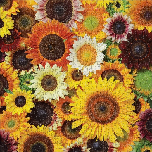 Rozświetlająca kolaż słoneczników autorstwa fotografki Julie Seabrook Ream zamienia układanie w letnie doświadczenie. To puzzle o 500 elementach mają format 51 × 51 cm, oferują matowe wykończenie, precyzyjne wycięcia i są wykonane z materiałów zrównoważonych (do 70% papieru z recyklingu) z certyfikatem FSC – idealne do relaksu i treningu koncentracji od 8 lat.