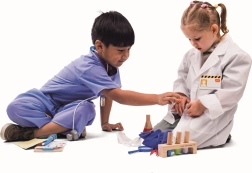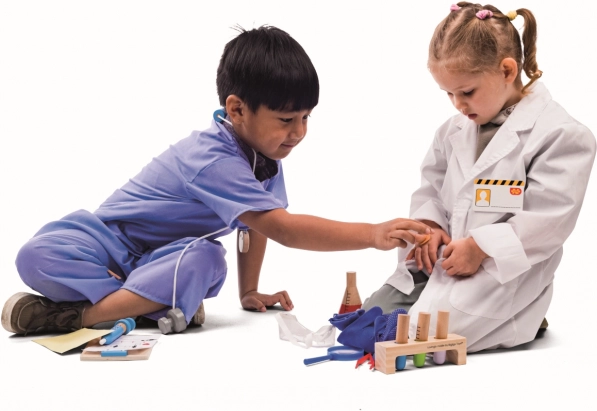 - Zmniejsza strach przed lekarzem dzięki naturalnemu oswajaniu z przyrządami.