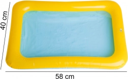 Nadmuchiwana piaskownica to świetne rozwiązanie, aby zapewnić dzieciom kreatywną zabawę piaskiem bez zbędnego bałaganu. Dzięki praktycznym wymiarom 56 × 40 cm mieści się na balkonie, tarasie i w pokoju dziecięcym. Wytrzymały materiał PVC jest wodoodporny i nadaje się do zabawy piaskiem kinetycznym oraz suchym.