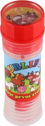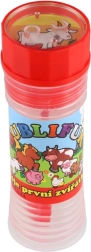 Bąbelki Moje pierwsze zwierzątka przynoszą mnóstwo radości przy każdym dmuchnięciu. Dzięki pojemności 50 ml wystarczają na długo i są świetnym towarzyszem na plac zabaw, do ogrodu i na dziecięce imprezy. Zintegrowana mini gra w nakrętce bawi dzieci także podczas przerw w dmuchaniu.