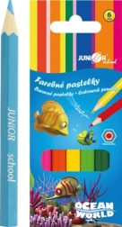 Kredki są zapakowane w kolorowe papierowe pudełko z motywem podwodnego świata, które inspiruje dzieci do dalszego tworzenia. Wysokiej jakości materiały i precyzyjne wykonanie zapewniają długą żywotność i odporność na łamanie, dzięki czemu dzieci mogą cieszyć się procesem twórczym bez obaw. Dodatkowo, kompaktowe opakowanie po 6 sztuk jest idealne do użycia w domu, w szkole lub w podróży.