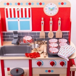 Ten kompleksowy zestaw do pieczenia zawiera całe wyposażenie, którego potrzebuje każdy mały kucharz do swoich pierwszych wypieków. W zestawie: blacha do pieczenia, rękawica kuchenna, forma do bochenka, trzepaczka, drewniany wałek, miska, zestaw łyżek miarowych oraz sześć foremek do ciastek.