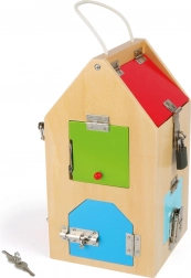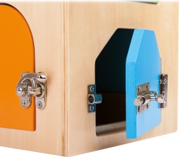 Kłódka, zamek cylindryczny, łańcuszek, zawiasy i inne mechanizmy uczą dzieci cierpliwości, logiki oraz precyzyjnych ruchów palców.