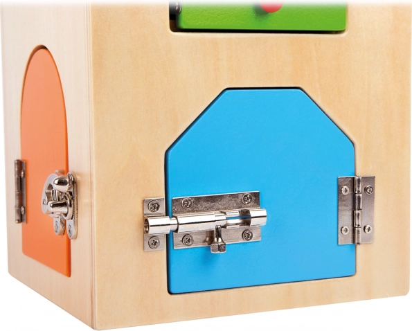 Domek motoryczny z zamkami small foot to sprytna zabawka dydaktyczna, która dzieciom od 3 lat pozwala bezpiecznie poznawać świat zamknięć i elementów mechanicznych. Każde drzwiczki skrywają inne wyzwanie – od kłódki i zamka cylindrycznego, przez różne śruby i dźwignie, po zawiasy i łańcuch zabezpieczający. Dzięki temu naturalnie rozwija się koordynacja ręka–oko, cierpliwość i koncentracja.