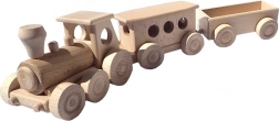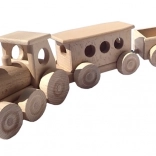 Drewniany pociąg osobowy zachwyci każdego małego miłośnika pociągów. Model jest wykonany z wysokiej jakości drewna bukowego z naturalnym wyglądem, który nie był chemicznie modyfikowany.