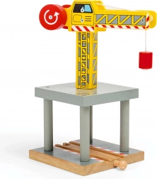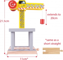 Żuraw można łatwo łączyć z innymi drewnianymi torami kolejowymi na rynku, co czyni go uniwersalną zabawką.