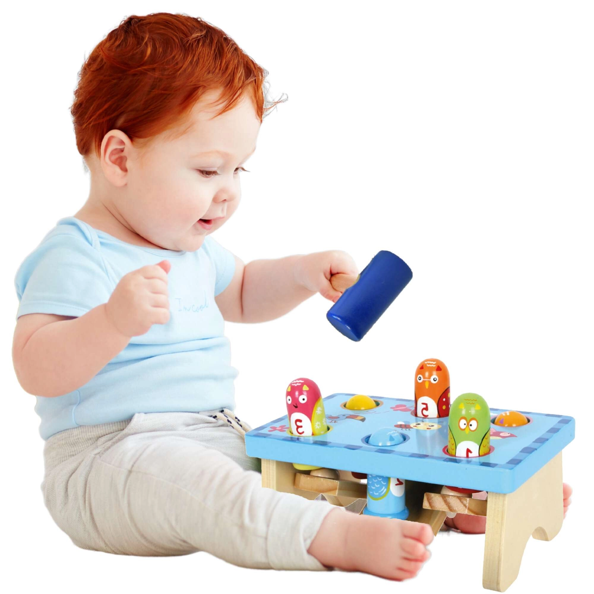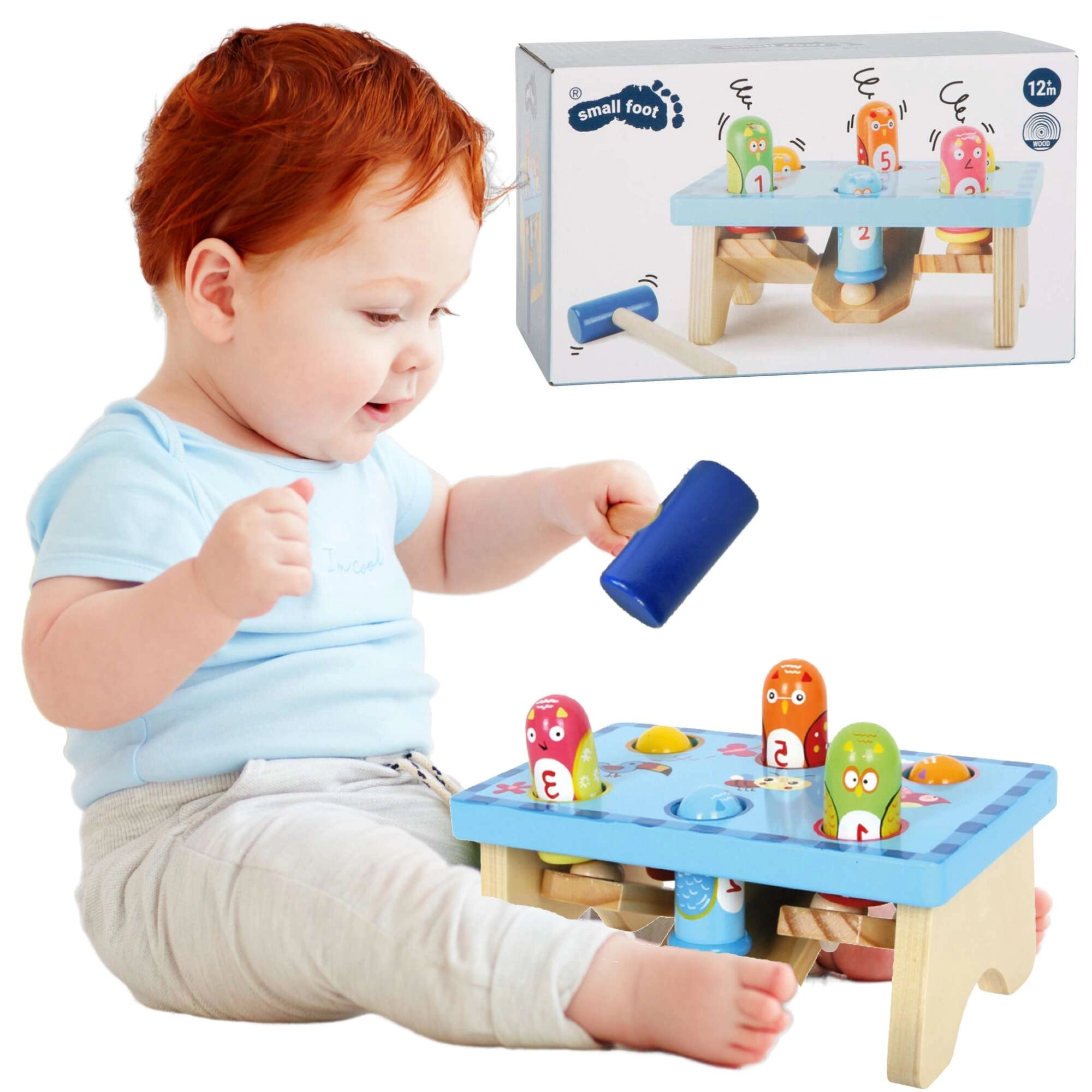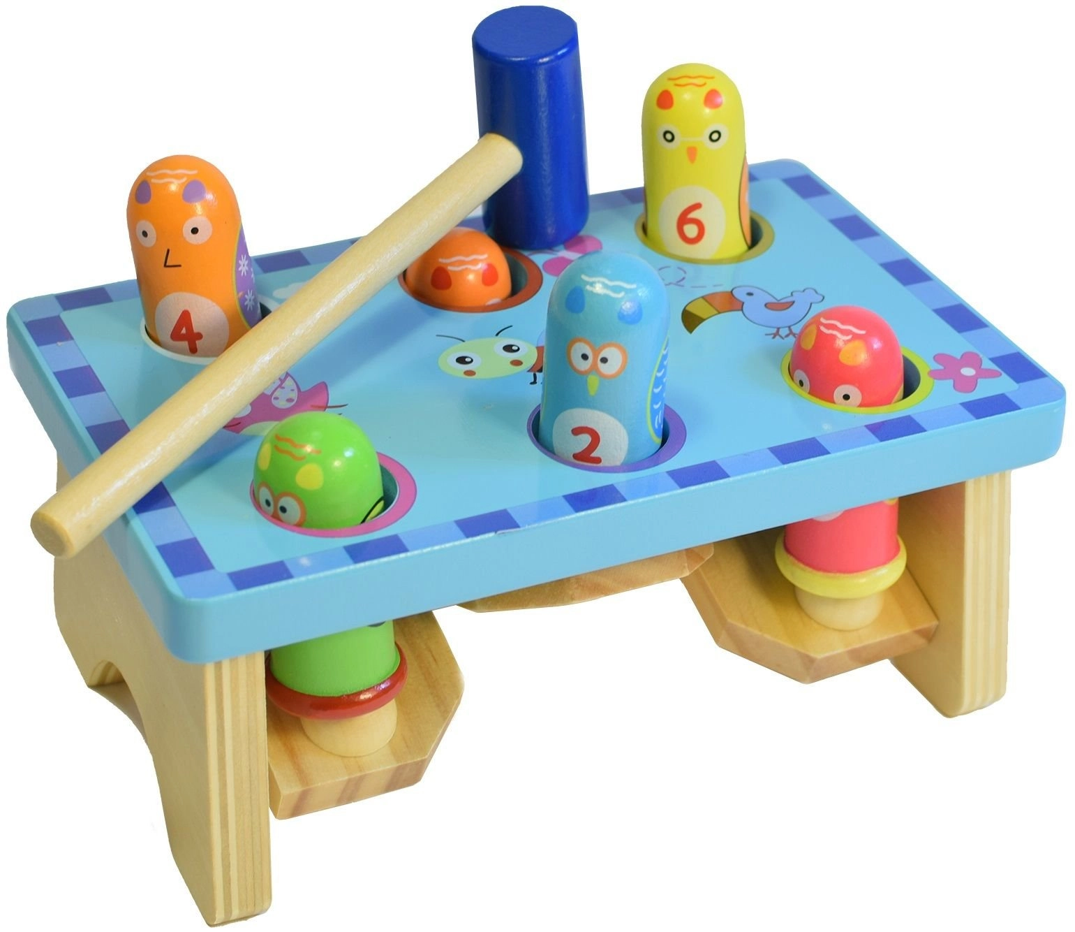 Dzięki solidnemu wykonaniu i ergonomicznemu młoteczkowi dzieci ćwiczą małą motorykę, koordynację ruchów oraz cierpliwość. Kolorowe i ponumerowane kołeczki pomagają w rozpoznawaniu barw i liczeniu, więc zabawa naturalnie łączy się z nauką.