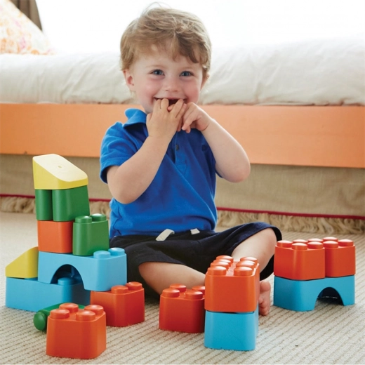 Odkryj zabawę i zrównoważony design w jednym zestawie. Klocki Green Toys są lekkie, a jednocześnie mocne i trwałe, wyprodukowane w USA z plastiku z recyklingu butelek po mleku. Dzieci mogą budować zamki, wieże i własne fantazyjne konstrukcje bez ryzyka małych elementów czy ostrych krawędzi.