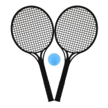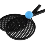 Jeśli szukasz lekkiego i poręcznego zestawu do soft tenisa, ten komplet jest właśnie dla Ciebie! Zawiera dwie wytrzymałe czarne plastikowe rakietki oraz niebieską piłkę z pianki dla większego bezpieczeństwa i łatwej obsługi. Przeznaczony do rekreacyjnej gry, idealny do zabawy na plaży, w ogrodzie lub w parku.