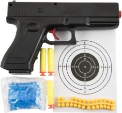 Ten kompaktowy pistolet na kulki to świetny wybór dla małych strzelców. Oferuje różnorodne możliwości strzelania – od wodnych kulek 6 mm, przez piankowe naboje, po gumowe kulki. Dzięki łatwemu ładowaniu i lekkiej konstrukcji nadaje się do zabawy w domu i na zewnątrz.
