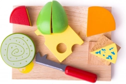 Drewno jest głównym materiałem tego precyzyjnie wykonanego serowego zestawu. Dzieci mogą spróbować roli kucharza za pomocą kolorowych drewnianych kawałków sera, które wyglądają jak prawdziwe sery. Zestaw zawiera nie tylko sery, ale także nóż i krakersy, które służą do doskonałej imitacji serwowania sera. Drewniane elementy zachęcają do kreatywnej zabawy i jednocześnie pomagają rozwijać motorykę małą dzieci.