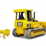 Model z detalami charakterystycznymi dla maszyn marki CAT, w tym gumowe gąsienice i duży ruchomy lemiesz.