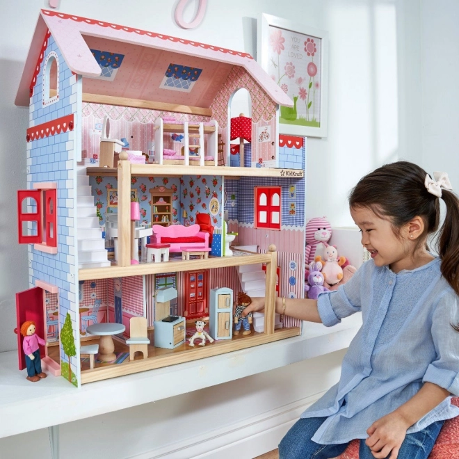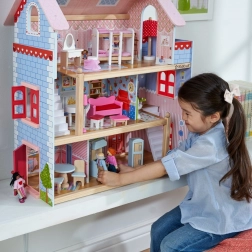 Domek dla lalek KidKraft Chelsea zachwyca bogatymi detalami i przemyślanym wyposażeniem. Trzy piętra z pięcioma pokojami i balkonem zachęcają do swobodnej zabawy, a kolorowe dodatki i realistyczne elementy wspierają rozwój wyobraźni oraz małej motoryki. W zestawie 16 sztuk mebli do natychmiastowej zabawy.