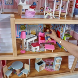 Domek oferuje 3 kondygnacje i 5 pokoi z balkonem – idealną przestrzeń do twórczej zabawy i tworzenia własnych historii.