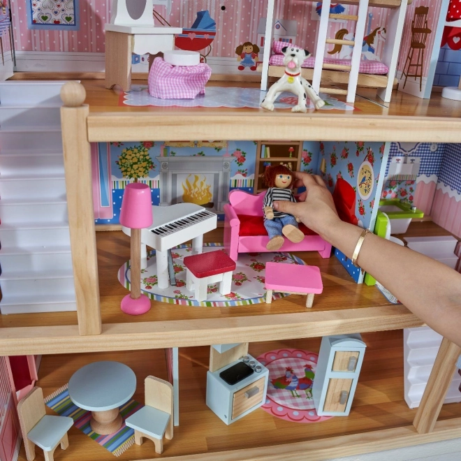 Realistyczne elementy, takie jak otwierane okiennice i kolorowe wyposażenie, wciągają dzieci do zabawy i wspierają wyobraźnię.